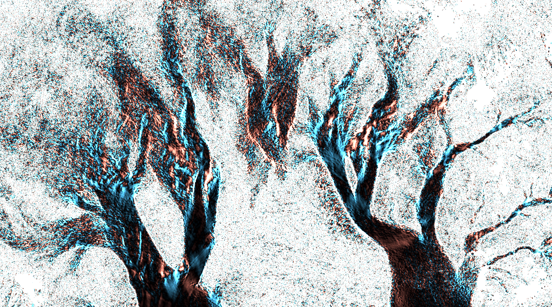Fast-flowing ice streams transport ice from the interior of the Antarctic Ice Sheet to the ocean. Understanding how ice-stream tributaries evolve is crucial for predicting the ice sheet’s response to climate change. This map, approximately 1000 km across, shows the pattern of flow convergence on the Siple-Coast Ice Streams in West Antarctica, computed from surface velocities measured by satellite-based interferometric radar. Blue and bronze colours signify converging and diverging flows, respectively. Black indicates streaming flow where the ice speed exceeds 50 metres per year. From left to right are the four major ice-stream systems of MacAyeal, Bindschadler, Whillans, and Mercer. Flow speeds on their main trunks reach several hundred metres per year. Visible above the centre of the image is the remnant flow of the Kamb Ice Stream, which stagnated 200 years ago.